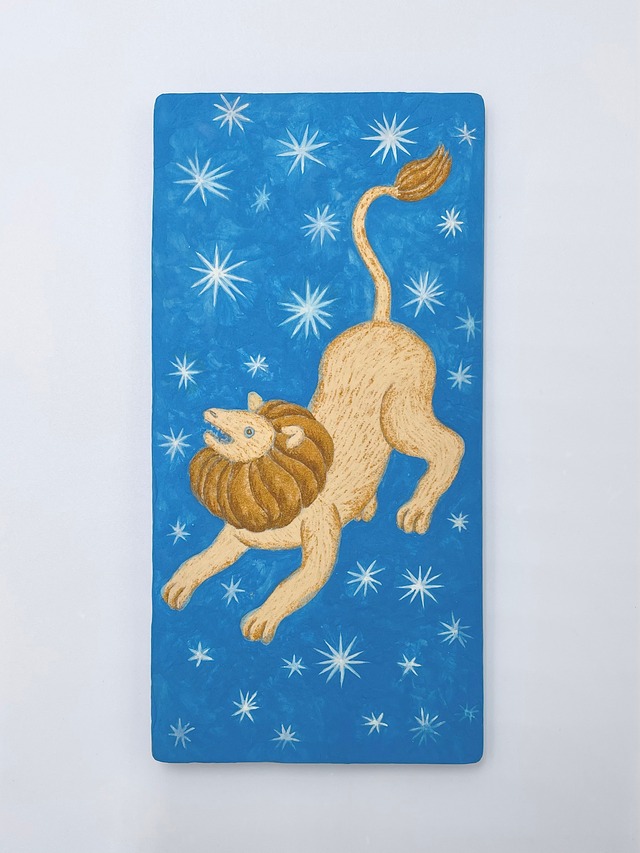 木の板に日本画材で描いた板絵のシリーズ〈Sometime Piece〉。 小さいころ大切にしていた宝箱の中には、誰かにとっては何の変哲もない自分だけの宝物が入っていました。 あの時の宝物たちのように、記憶の欠片を集め描くことで、それが誰かの宝物になればと願っております。 No.42は、兄が大事にしていたライオンのぬいぐるみのことを想って描きました。 【サイズ】 縦14cm×横7cm ※取り扱い注意について 〈Sometime Piece〉は、岩絵具、膠などの日本画材で描かれています。 自然の恵みを使うことで独特な風合いがお楽しみいただけますが、画材の性質上湿度や乾燥に弱いという側面もございます。 湿度の高い場所や乾燥している場所での保管は、カビの発生や割れの原因となる可能性があるので、お気をつけください。 また、直射日光は変色や形状の変化の原因となりますのでお避けください。 描かれている部分を擦った場合、絵具がとれてしまう可能性がありますのでお気を付けください。 既製品とは違う手作りの商品ですので、ご理解しご納得の上、ご購入いただけますようお願い申し上げます。 商品の写真については、実際の商品の色味や質感と若干の違いが出ることもあります。ご了承ください。