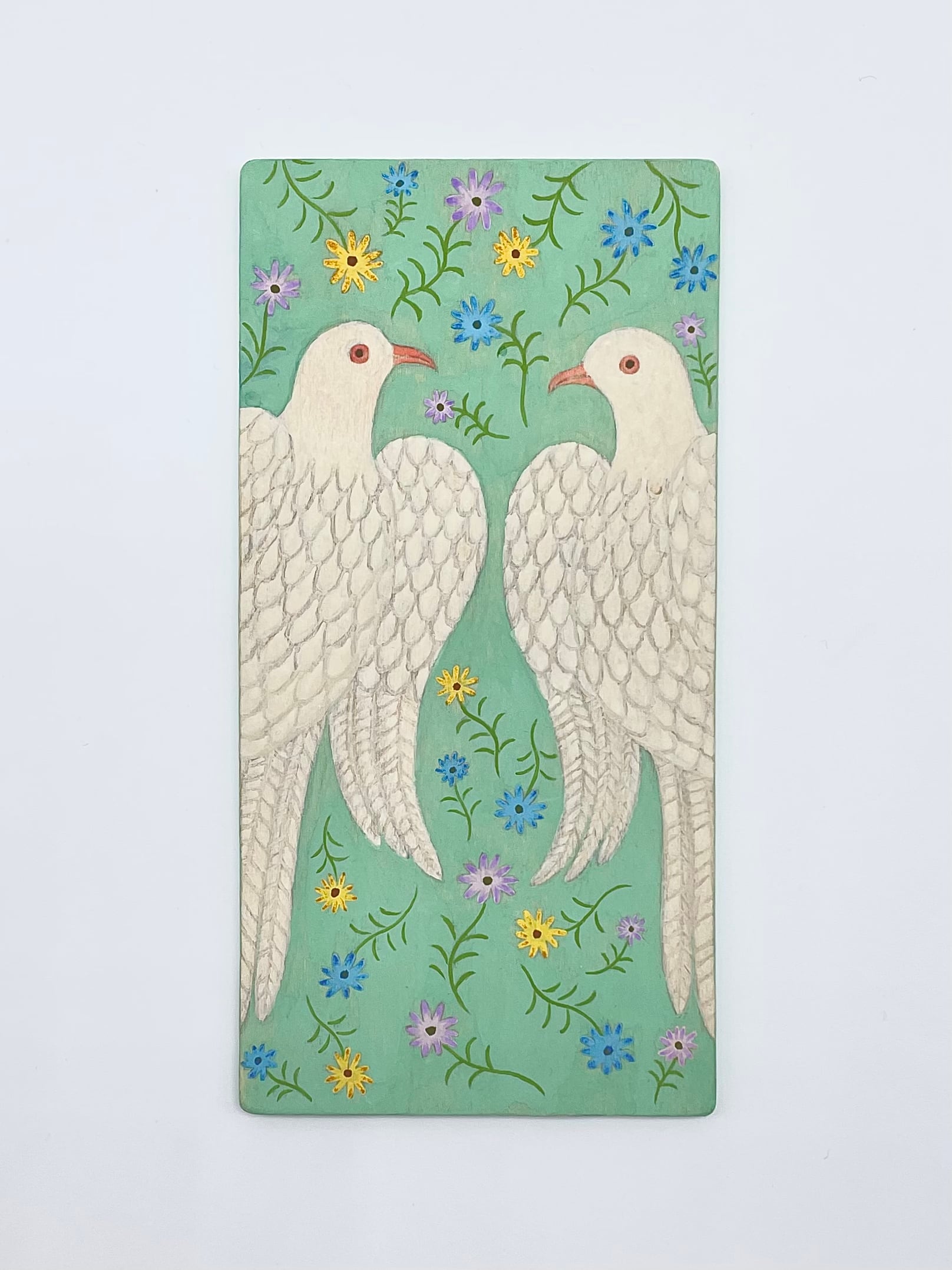 木の板に日本画材で描いた板絵のシリーズ〈Sometime Piece〉。
